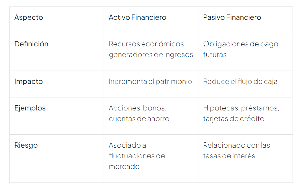 Entender las diferencias entre activos y pasivos es fundamental para gestionar tu economía de forma eficiente. Los activos generan ingresos y aumentan tu patrimonio, mientras que los pasivos, si no se gestionan bien, pueden limitar tus recursos. ¿Estás tomando decisiones informadas para maximizar tus activos y minimizar tus deudas?