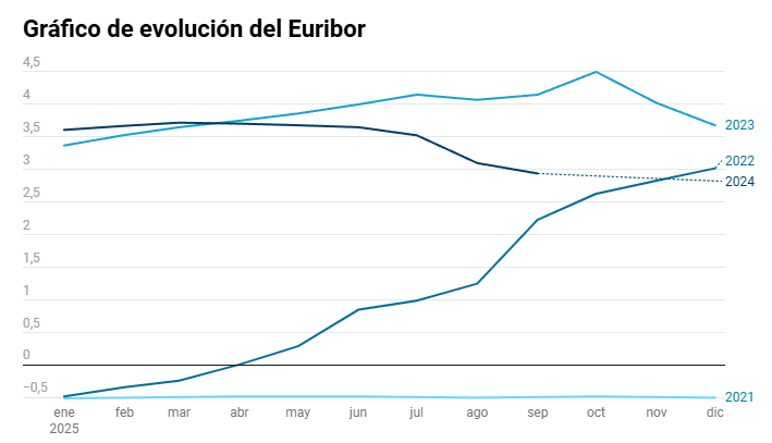 El Euríbor es el indicador que muestra el interés al que los bancos se prestan dinero entre sí en la Zona Euro, siendo en España la referencia principal para determinar el coste de la mayoría de las hipotecas variables.